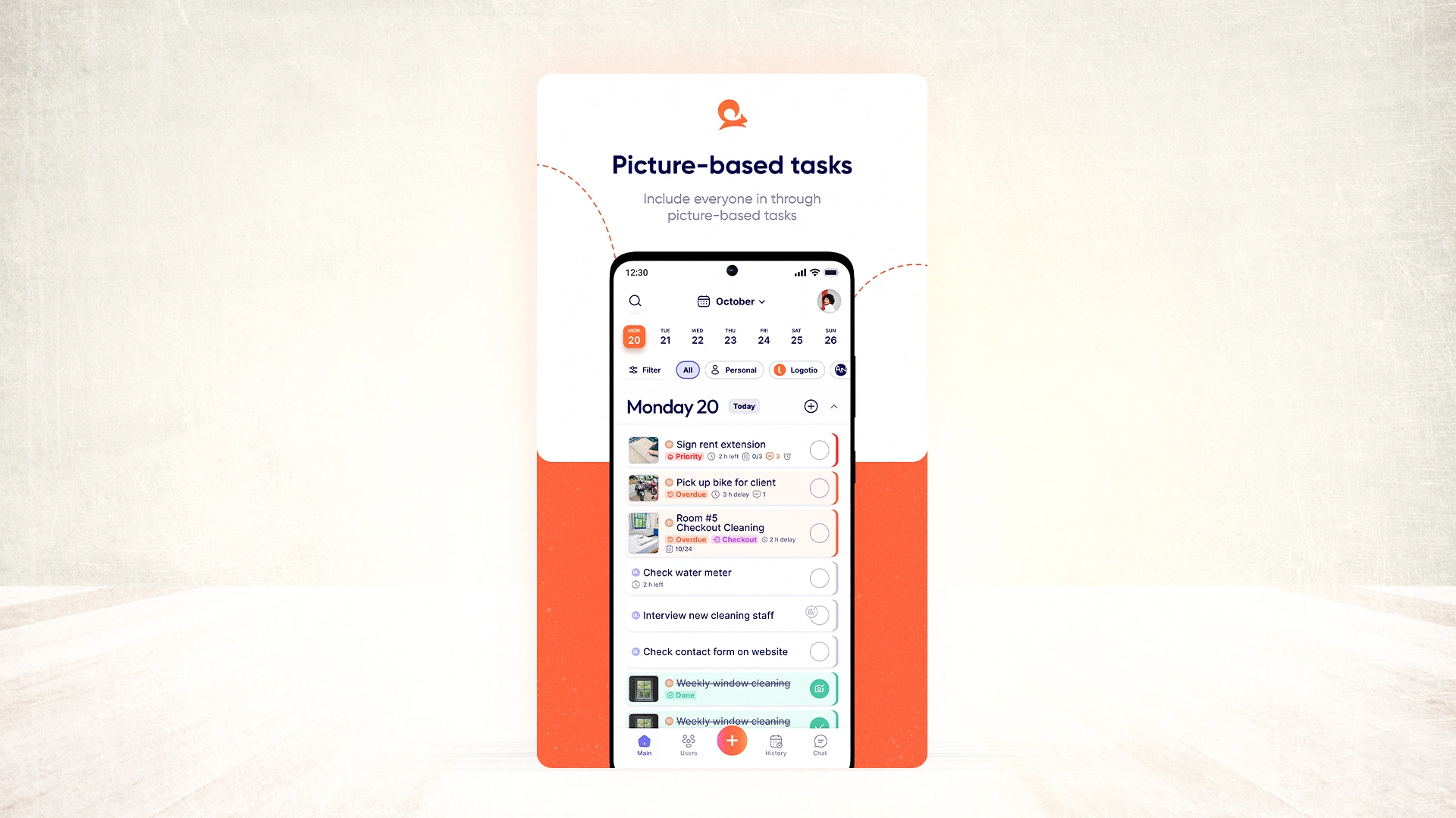 Tasa's core innovation is simple: show, don't tell. Create tasks using photos that demonstrate what needs to be done.