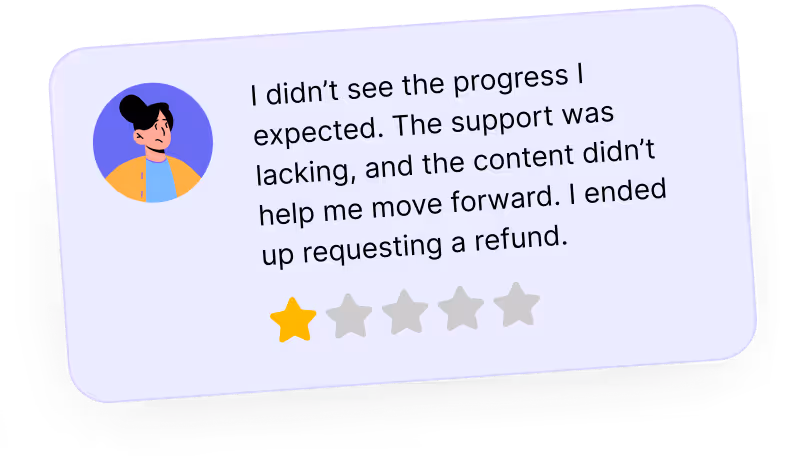 I didn’t see the progress I expected from this course. I ended up requesting a refund. Unfortunately, I can’t recommend this program.